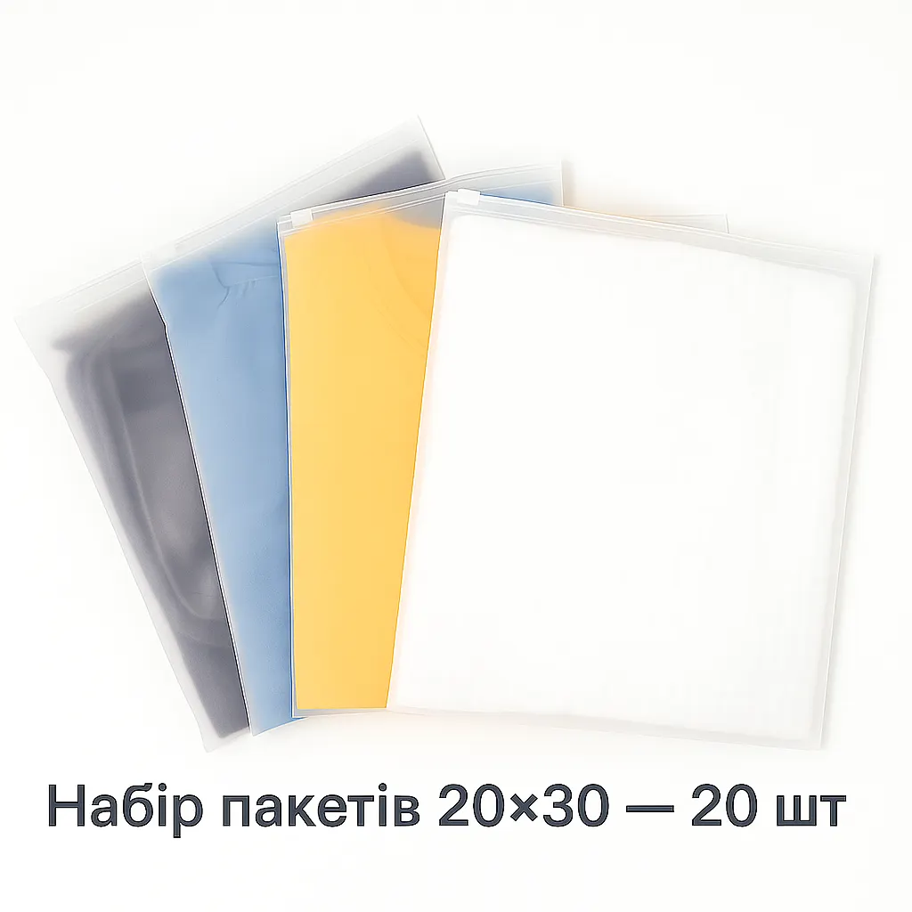 Набір пакетів для зберігання із слайдер-замком матовий 20 шт - 20×30 см LoveYouHome