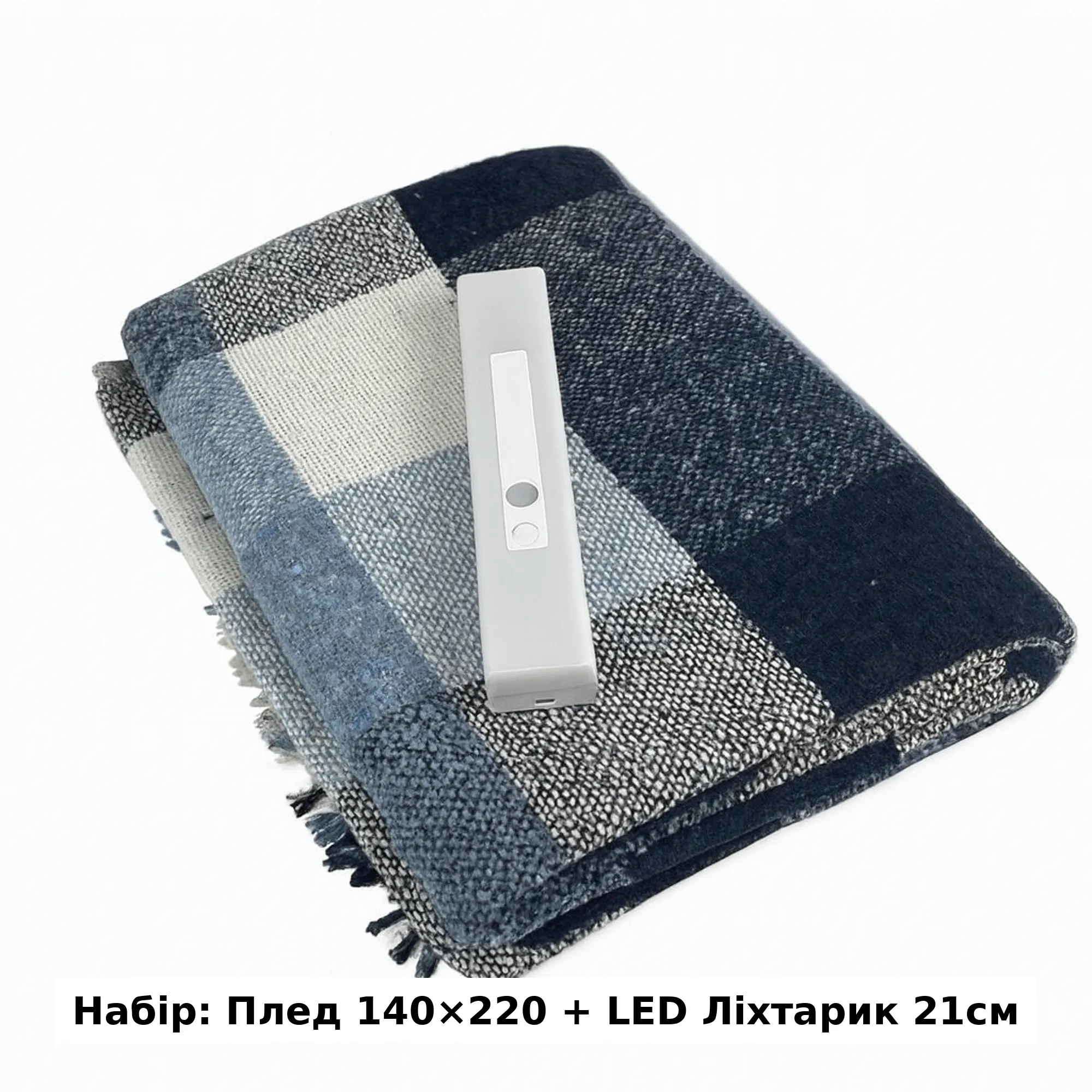 Набір Плед вовняний П8 біл-блак-синій 140×200 см + Ліхтар-лампа LED 21см з датчиком руху Love You