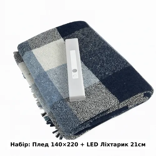 Характеристики "Набір Плед вовняний П8 біл-блак-синій 140×200 см + Ліхтар-лампа LED 21см з датчиком руху Love You"