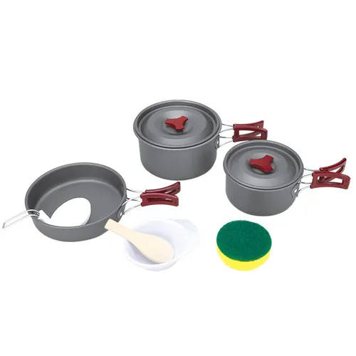 Набір посуду компактних розмірів призначений для використання в туризмі. Процес приготування їжі на відкритому повітрі буде легким, швидким та приємним. Оптимально для використання невеликою компанією із двох-трьох осіб. У комплект включені три ємності, половник, ложка, губка для миття посуду. Все це дуже зручно для експлуатації у польових умовах. Також передбачено чохол для зберігання та перенесення виробів.