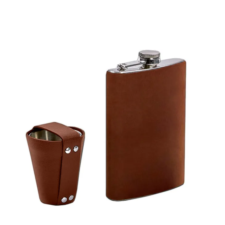 Вироби виконані з натуральної шкіри та харчової нержавіючої сталі, що гарантує їхню довговічність та високу якість. Нержавіюча сталь стійка до корозії та легко очищається від забруднень. Використовуйте м'які миючі засоби та теплу воду для догляду за флягою та чарками.