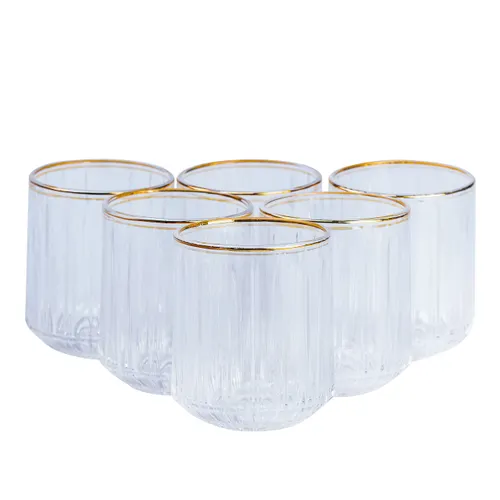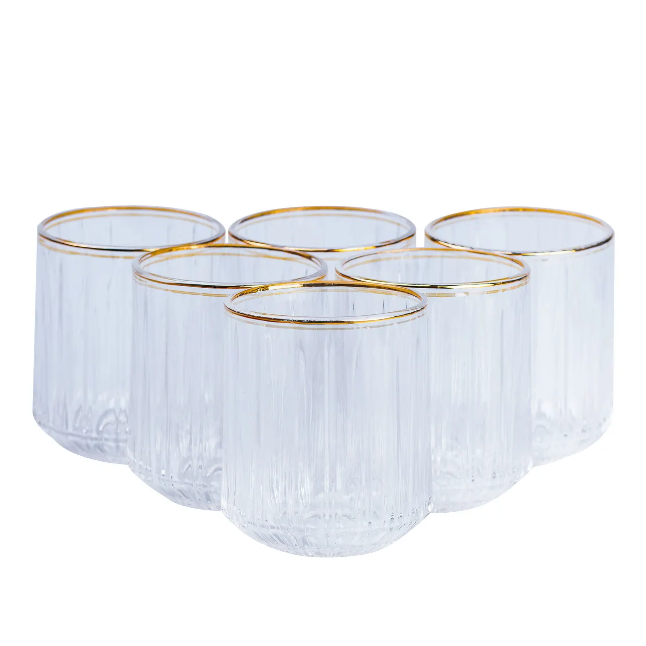 Набір скляних стаканів із 6 штук по 315 мл прозорий з золотим обідком HP553 — це вдалий вибір для тих, хто цінує якість, практичність і естетичний дизайн у столовому посуді. Ці стакани підкреслять вашу увагу до деталей і зроблять процес подачі напоїв приємнішим і стильнішим.