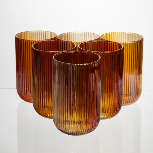 Функціональність і стиль в одному наборі. Ці склянки стануть універсальним рішенням для щоденного використання — вдома, в офісі або в закладах громадського харчування. Вертикальне рифлення й класична форма роблять подавання напоїв естетичнішим і зручнішим. Основні характеристики набору склянок для лимонадів, соку, води, коктейлів: Тип: склянки для напоїв Кількість: 6 штук Об'єм: 350 мл Матеріал: товсте скло Висота: 12.5 см Діаметр: 8 см Дизайн: ребристий Особливості набору скляних склянок: Рельєфна поверхня робить склянки зручнішими в утриманні та запобігає ковзанню, особливо у разі вологих рук. Прозоре кольорове скло середньої товщини не тільки має гарний вигляд, але й дає змогу легко контролювати рівень напою. Склянки стійкі на столі, легко миються вручну та підходять для посудомийної машини. Нейтральний дизайн дає змогу поєднувати їх із будь-яким іншим посудом — від повсякденного до святкового. Практичний і стильний набір, який підійде як для повсякденного використання, так і для сервірування столу до приходу гостей. Ці склянки приємно тримати в руці, зручно використовувати та легко поєднувати з будь-яким посудом. Чудовий вибір для тих, хто цінує комфорт і акуратність у деталях.