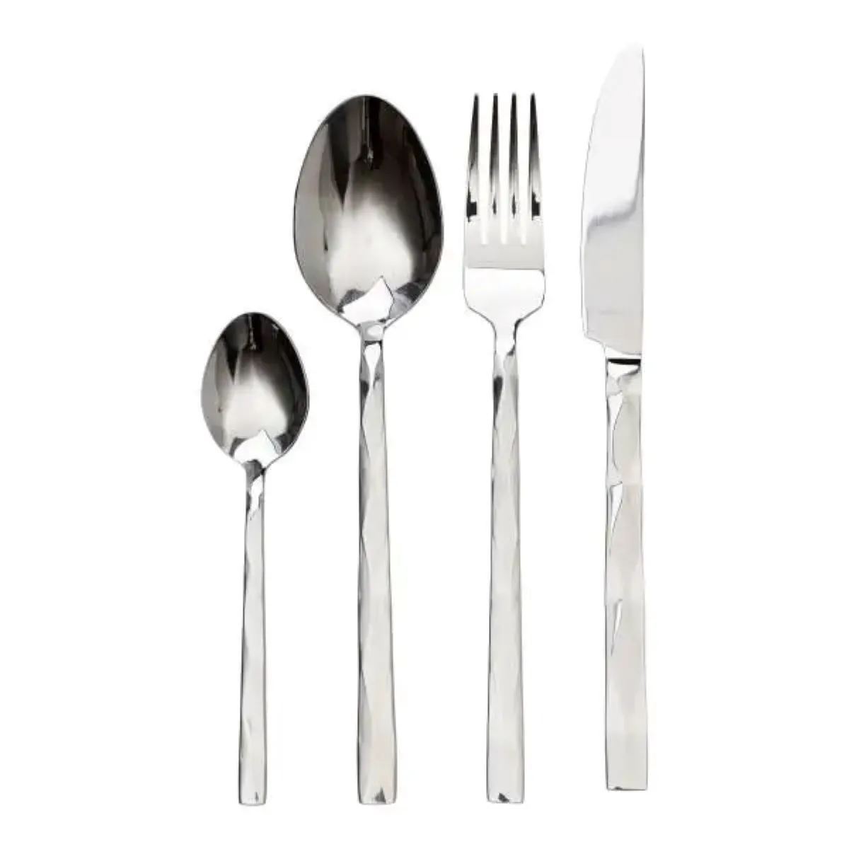 Цей набір столових приборів включає 24 предмети, спеціально розраховані на обслуговування шести осіб. Комплект складається з шести столових ножів, шести столових виделок, шести столових ложок і шести чайних ложок, що забезпечує всю необхідну посуду для повноцінного прийому їжі.