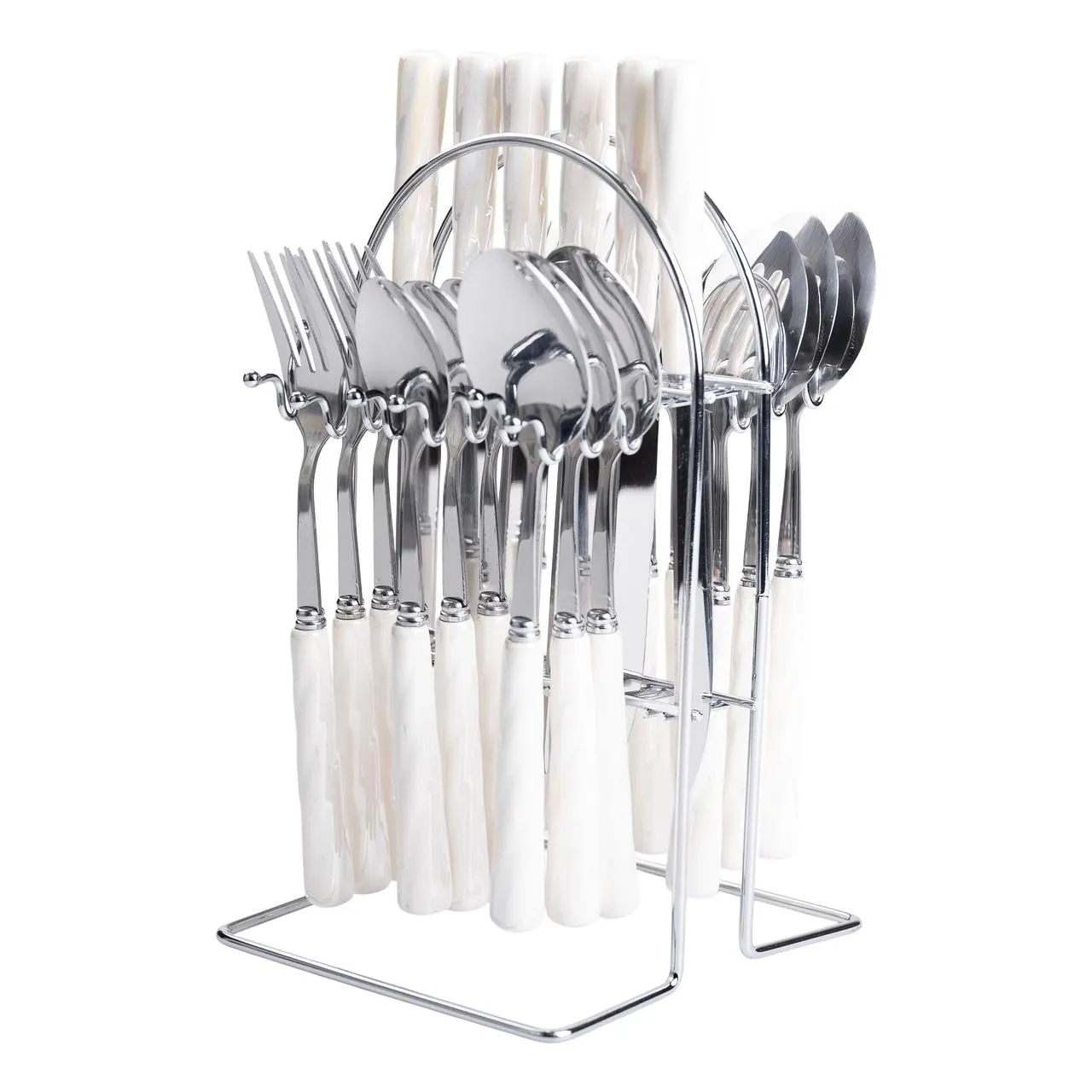 Характеристики "Набір столових приборів на підставці 24 предмети столовий набір на 6 персон Білий зі сріблом HP-20-50"