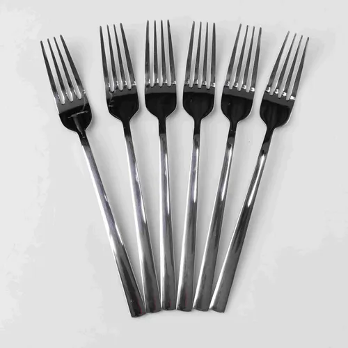 Столові прибори в стилі hi-tech, що доповнюють серію з плоскими геометричними рукоятками. Модель характеризується відсутністю округлих ліній на ручці та суворим силуетом. Особливості: Матеріал: Нержавіюча сталь. Матеріал має високу міцність, стійкий до корозії та зберігає геометрію зубців при інтенсивному використанні. Робоча частина: Вилка має чотири класичні зубці з дзеркальним поліруванням, що полегшує догляд за приладом. Розмір: Довжина виробу становить 21,5 см, що відповідає формату повнорозмірної столової вилки для основних страв. Ергономіка: Пряма форма ручки забезпечує стійке положення приладу в руці. Характеристики: Матеріал: нержавіюча сталь Довжина: 21,5 см Вага набору: 200 г