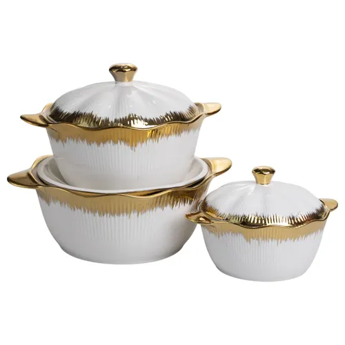 Набір супниць порцелянових 3 (шт) 0.8/1.8/2.5 (л) з позолотою XYL216-4A