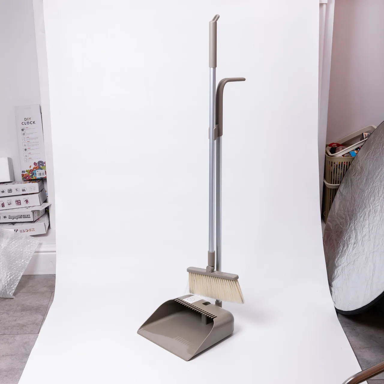 За рахунок компактності та зручності зберігання набір можна використовувати не лише вдома, а й брати з собою для прибирання в дачному будинку, гаражі чи автомобілі. Тримач для щітки дозволяє легко закріплювати віник, щоб заощадити місце при зберіганні.