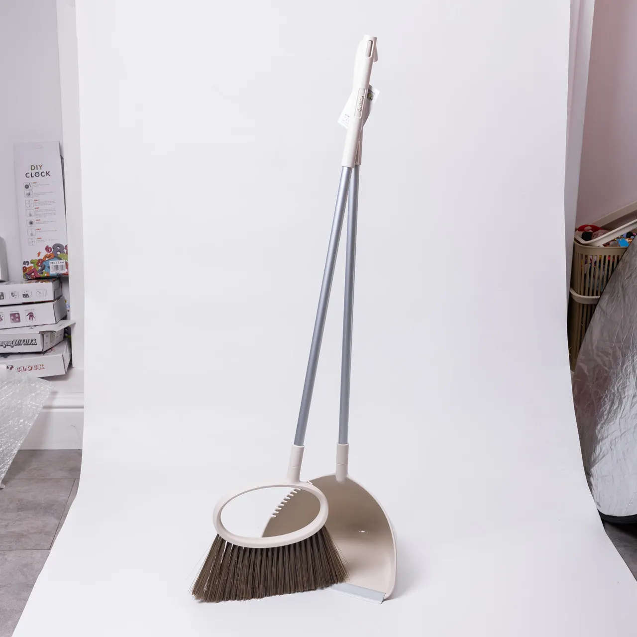 Зберігати віник і совок слід у вертикальному положенні або на спеціальному тримачі, що запобіжить деформації щетини та корпусу. Після використання варто сушити комплект на повітрі, особливо якщо він піддавався вологому прибиранню або промиванню.