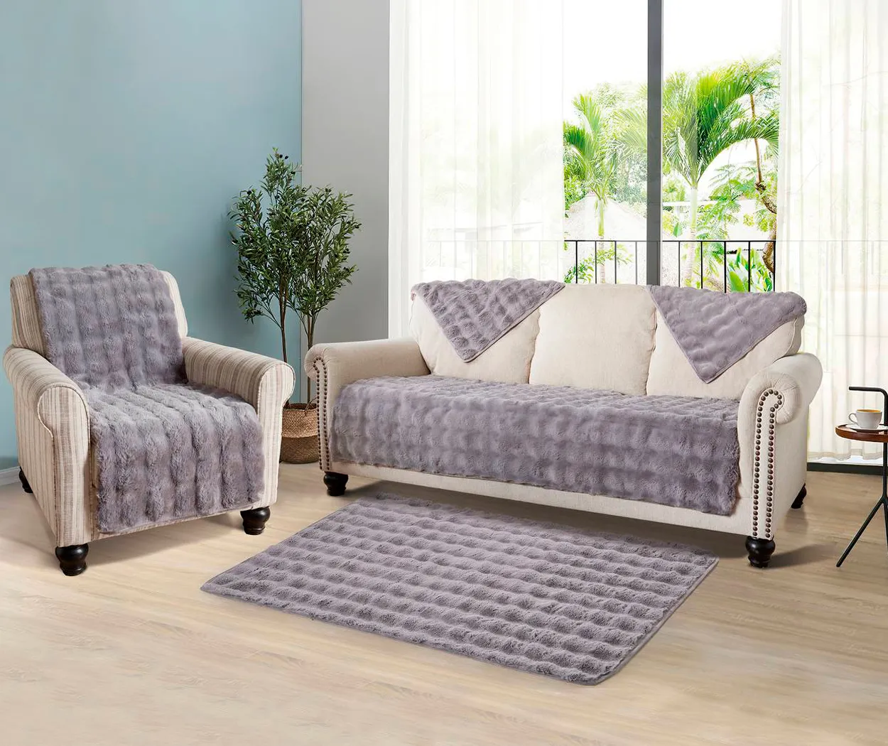 Накидка виконана зі штучного хутра та поліестеру, що робить її стійкою до щоденного використання. Вона не тільки захищає ваші меблі, але й доповнює її, надаючи будинку свіжого вигляду.