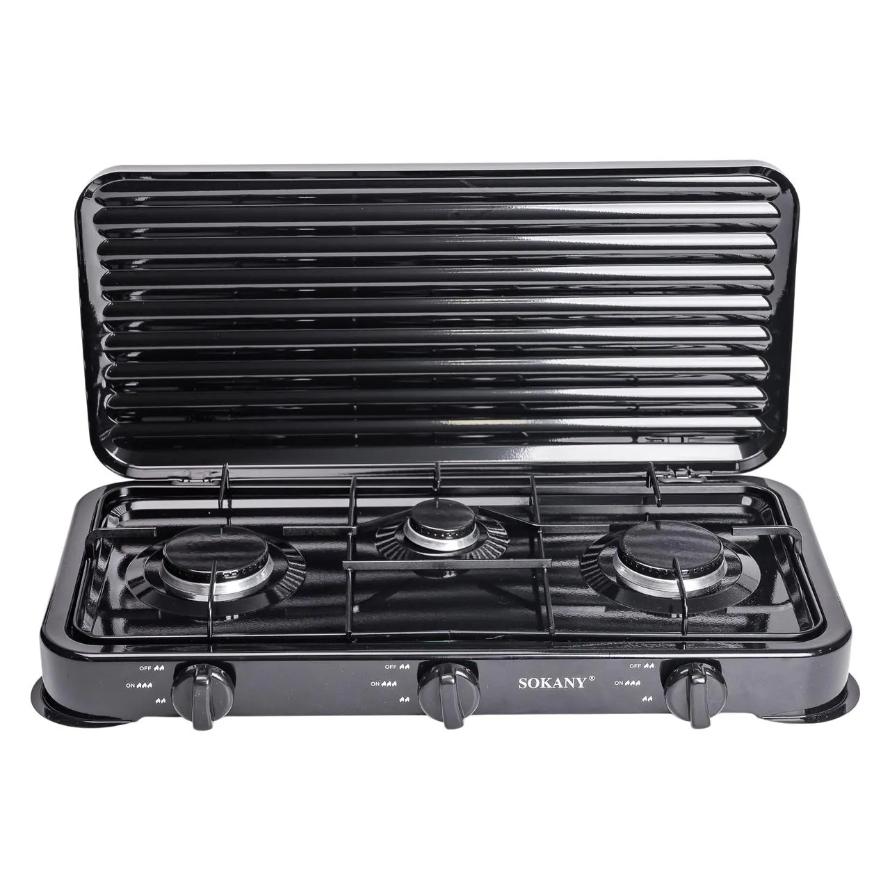 Настільна газова плита на 3 конфорки Sokany 5.5 кВт Чорна Lugi SK-6003B