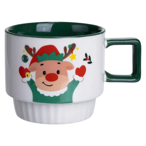 Новорічна порцелянова Новорічний олень 400 (мл) Біла з зеленим Yiwu FM-CS-50O