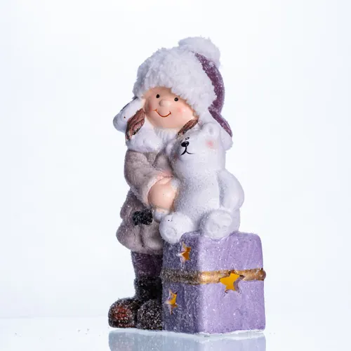 Новорічна фігурка з підсвіткою Дівчинка з ведмежам виготовлена з якісного порцеляни, що надає виробу вишуканий та святковий вигляд. Розміри фігурки — 12×7×20 см — роблять її зручною для розміщення на полицях, камінах чи вітринах. М'яке світіння створює додатково атмосферу затишку та тепла, підкреслюючи деталі та лінії виробу.