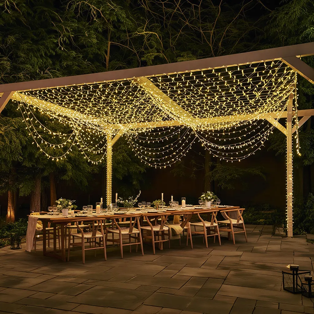 Жовте тепле світло цієї гірлянди чудово поєднується з натуральними матеріалами, такими як дерево та камінь, створюючи затишну атмосферу на відкритому повітрі та всередині приміщень. Її можна комбінувати з іншими світловими елементами, наприклад, світловими кулями або світлодіодними фігурами, для створення повноцінного світлового оформлення.