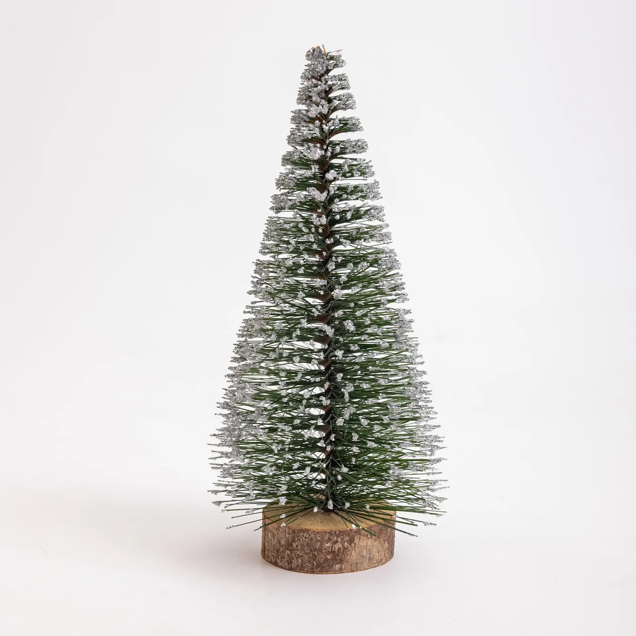 Новорічна настільна ялинка засніжена Стріла 25 см на дерев'яній підставці SOK-М-12-1