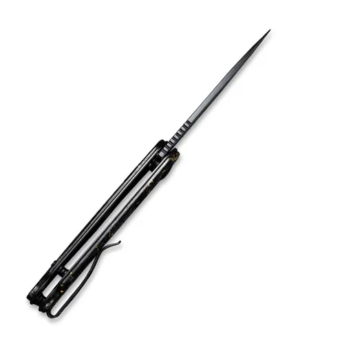 З правого боку рукоятки є чорна кліпса зі сталі. Разом із цим складним ножем він важить 77.7 г, що робить його зручним для щоденного носіння.