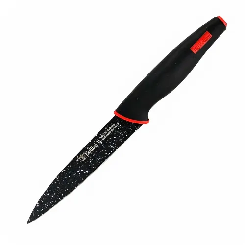 Ніж універсальний із покриттям Non stick – BOLLIRE: довжина 12.5 см, товщина 1.2 мм. Зроблено за німецькими стандартами якості LFGB. Кухонні ножі серії MILANO виготовлені з нержавіючої сталі SS420. Основні переваги ножів — міцність, твердість, стійкість до зношування. Завдяки покриттю Graphite non-stick продукти не прилипають до леза при нарізці, а сталь максимально захищена від пошкоджень. Леза мають двостороннє симетричне заточування по всій довжині ріжучої кромки, що забезпечує легку нарізку та обробку. Ергономічна рукоятка з покриттям Soft Touch забезпечує комфорт у процесі нарізки, стійка до ковзання та забезпечує безпечну роботу.