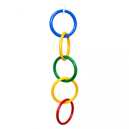 Олімпійка 5 кілець - це грашка-підвіска, створена для піклування захопленого дозвилля ваших пернатих друзів. Виготовлена з високоякісної кольорової пластмаси, яка є безтурботною для птахів, вона складається з п'яти з'єднуваних між собою круглих кілець, які можна легко прикріпити до клітки.