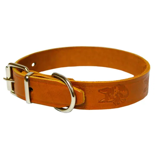 Нашийник виконаний з натуральної шкіри, що гарантує довговічність та міцність виробу. Тиснення надає виробу унікального зовнішнього вигляду та естетичної привабливості, що буде підкреслено рудим кольором, що ідеально підходить для більшості собак.