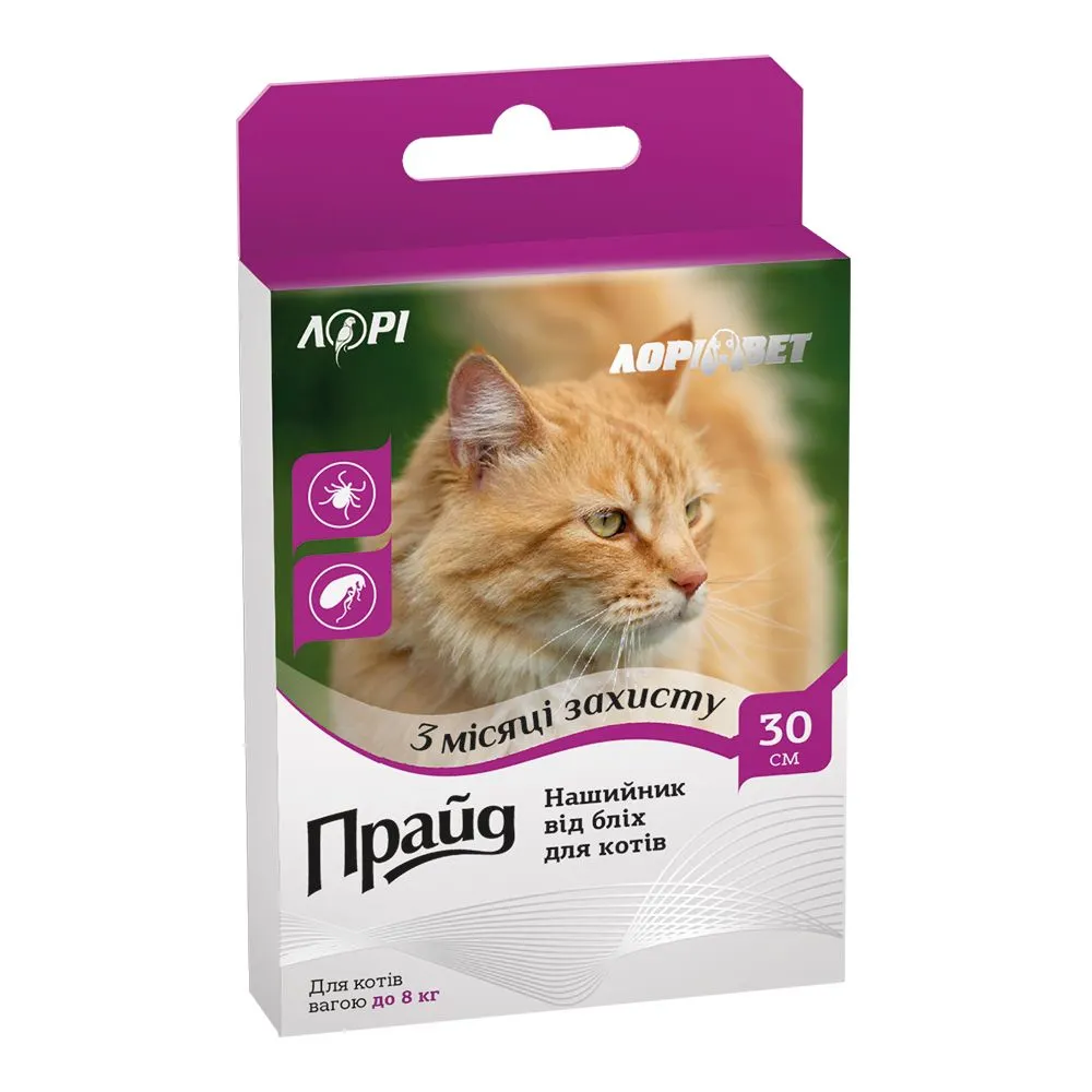 Характеристики "Нашийник від бліх “Прайд” для котів, 30см (до 8 кг)"