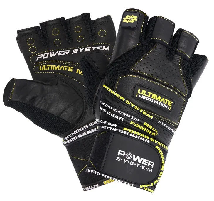 Рукавички для тяжкої атлетики Power System Ultimate Motivation PS-2810 Black Yellow Line підійдуть як для занять спортом удома, так і у тренажерному залі. Ці рукавички, виготовлені з високоякісної шкіри, підходять для фітнесу та бодібілдингу. Вони запобігають ковзанню рук по поверхнях тренажерів та грифу штанги, забезпечуючи «сухий» фіксований хват, та виключають появу мозолів. Іноваційний вигнутий дизайн пальців відповідає анатомічній формі руки, а гелеві подушечки на долоні створюють додатковий комфорт та стабільність.