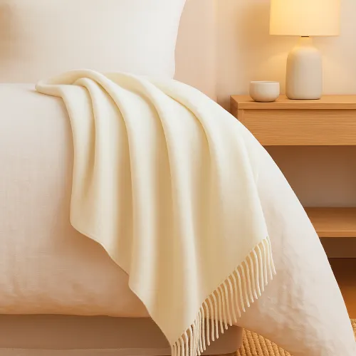 Якщо плед трохи колеться при дотику, це природна особливість первинної вовни молодих ягнят, яка з часом стає м'якшою при частому використанні.