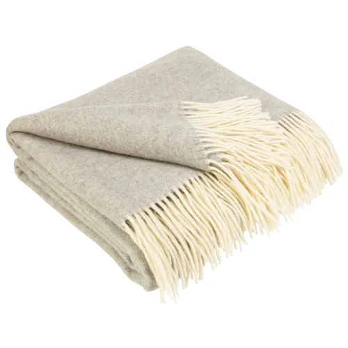Плед виконаний із 100% овечої вовни високої якості, що забезпечує природну теплоізоляцію, дозволяючи тілу дихати і запобігаючи перегріванню. Матеріал має щільність 380 г/м2, що робить плед міцним і довговічним, а також приємним на дотик. Декорування у вигляді бахроми додає виробу елегантності та шарму.