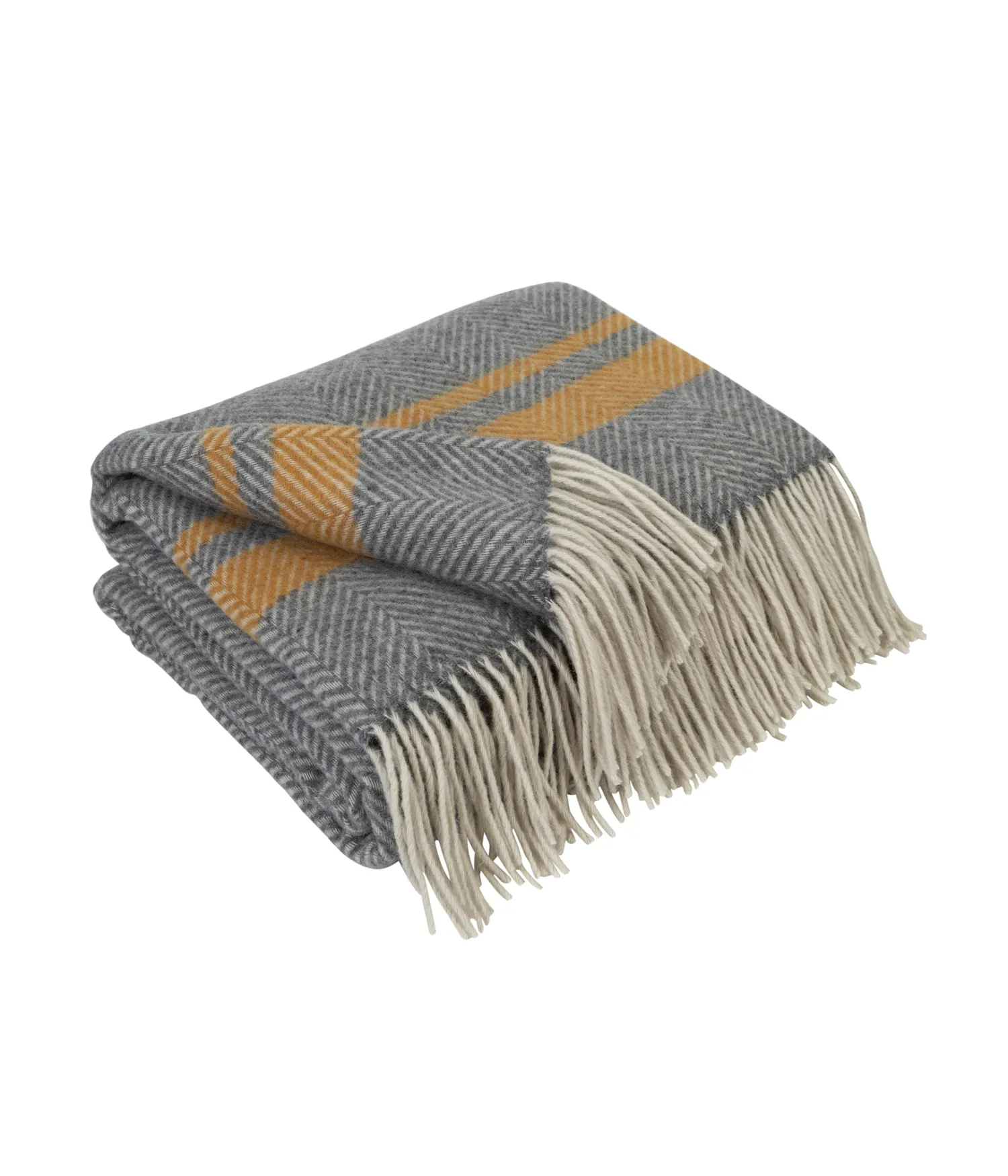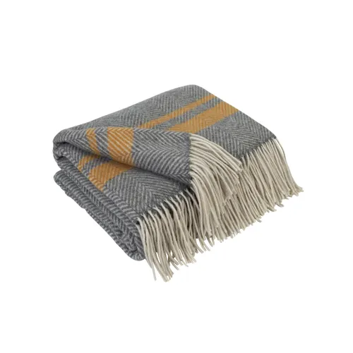 Єлегантний і стильній дизайн пледа, що включає білу, сіру та гірчичну смужку, що дає будь-якому інтер'єру нотку витонченості та стилю. Розмір пледа в 140 x 200 см і явність бахроми розжарювати його ідеальним вібором як для дивана, так і для ліжка.