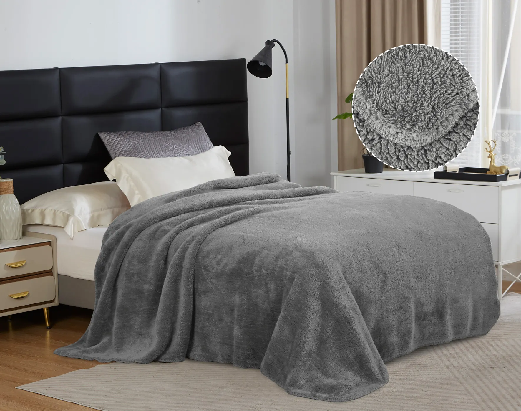 Затишок та комфорт з пледом-ковдрою з шерпи та флісу сірого кольору Love You 150 x 200 см