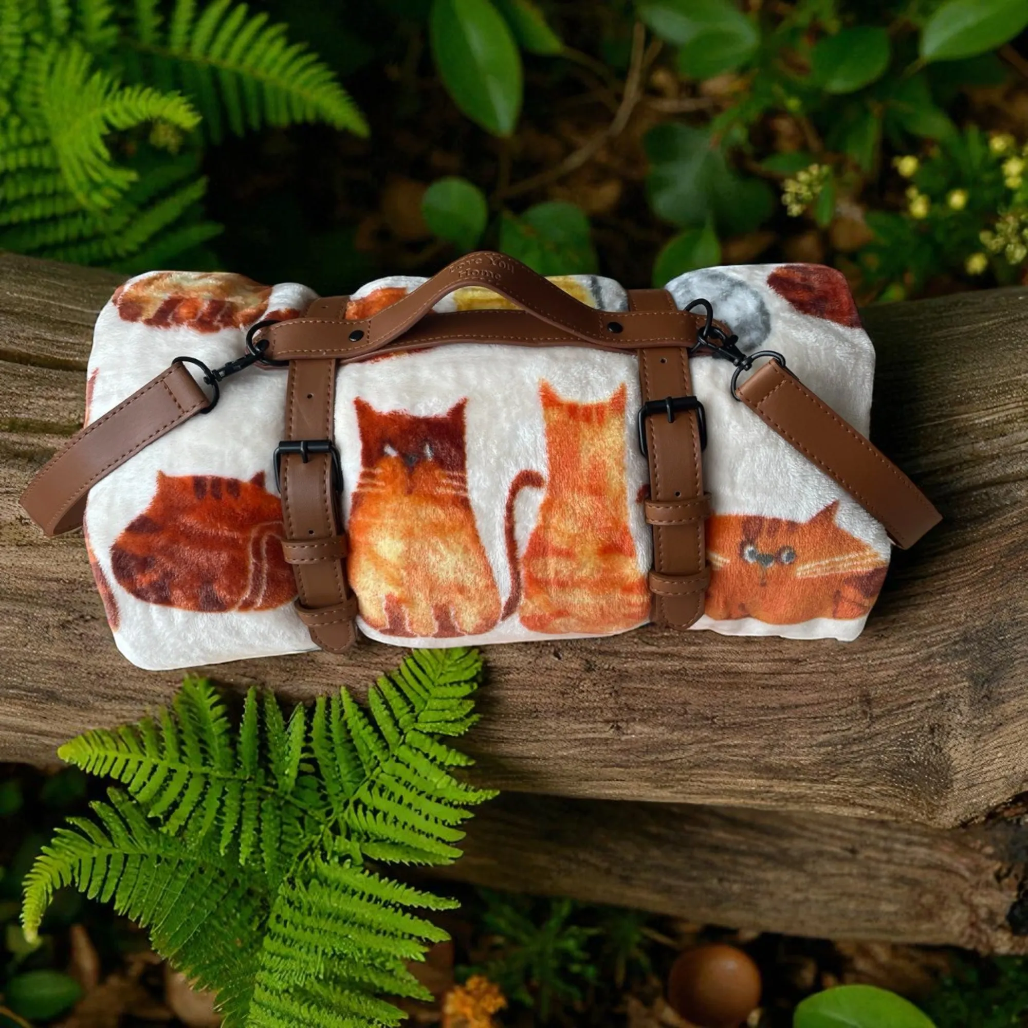Унікальний принт з котиками надає виробу індивідуальність і робить відпочинок приємнішим. Крім того, ремінь для перенесення зі штучної шкіри забезпечує зручність транспортування, чого часто не вистачає аналогічним моделям. Щільність матеріалу 280 г/м2 допомагає зберегти тепло навіть у прохолодні дні.