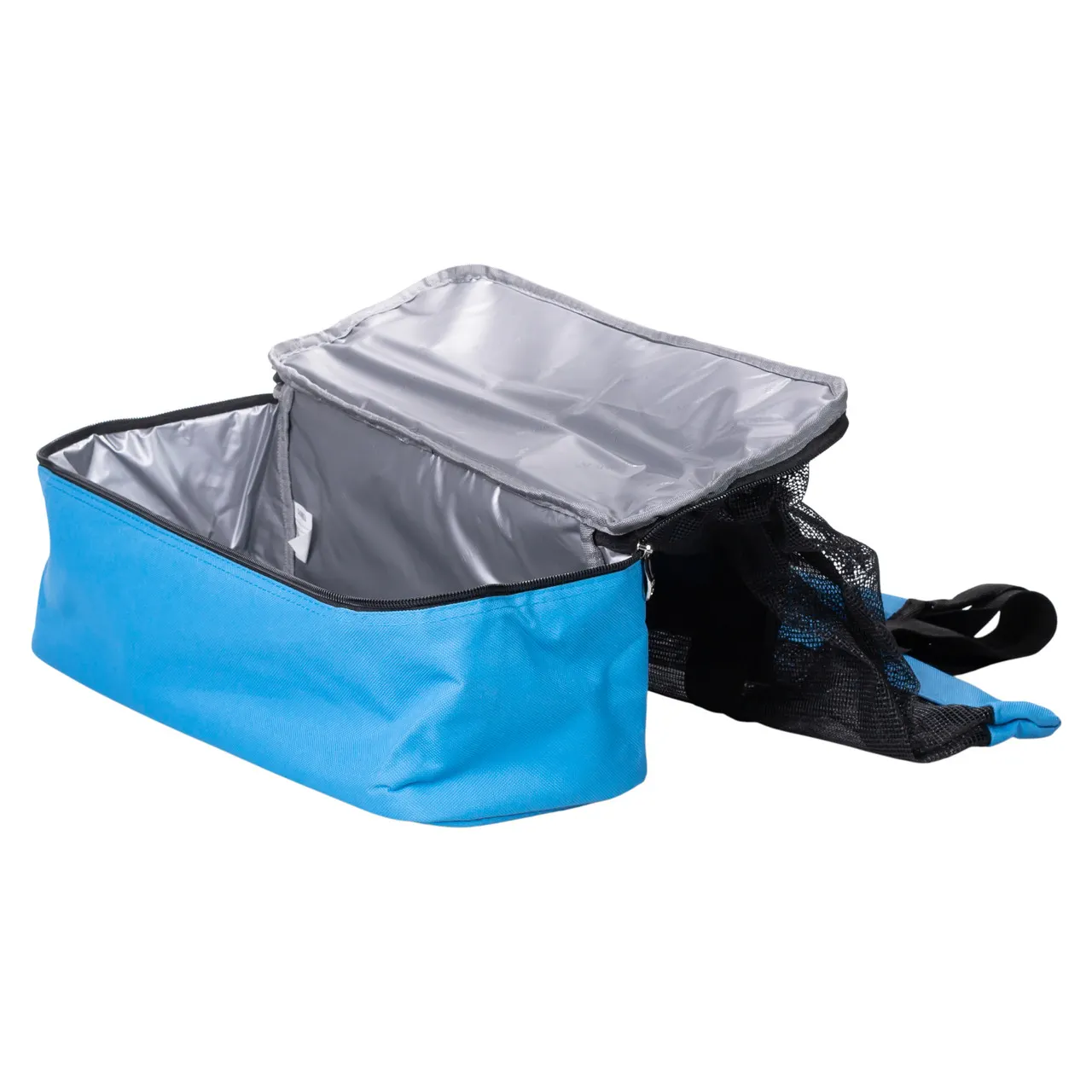 Пляжна сумка-холодильник, термосумка на 2 відділення для природи та пікніка 47×15×48 (см) Блакитна HP-14-25BL є зручним і стильним аксесуаром, що поєднує в собі функції пляжної сумки та ізотермічного контейнера. Вона розроблена для комфортного зберігання і транспортування як особистих речей, так і продуктів зі збереженням їх свіжості та прохолоди.