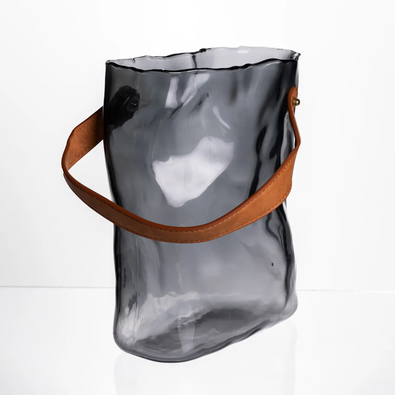 Подарункова скляна ваза сумочка з ручкою 18×9×25 (см) декоративна Сірий HP-19-157-2