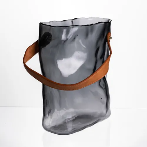 Ваза виготовлена з міцного високоякісного скла, що гарантує довговічність і стійкість до механічних впливів. Використання штучної шкіри для ручки надає виробу вишуканого вигляду та практичності, дозволяючи переносити вазу з комфортом. Кольорова гама — відтінки сірого з димчастим ефектом — легко впишеться в будь-який сучасний інтер’єр, доповнить мінімалістичні та скандинавські стилістичні рішення.