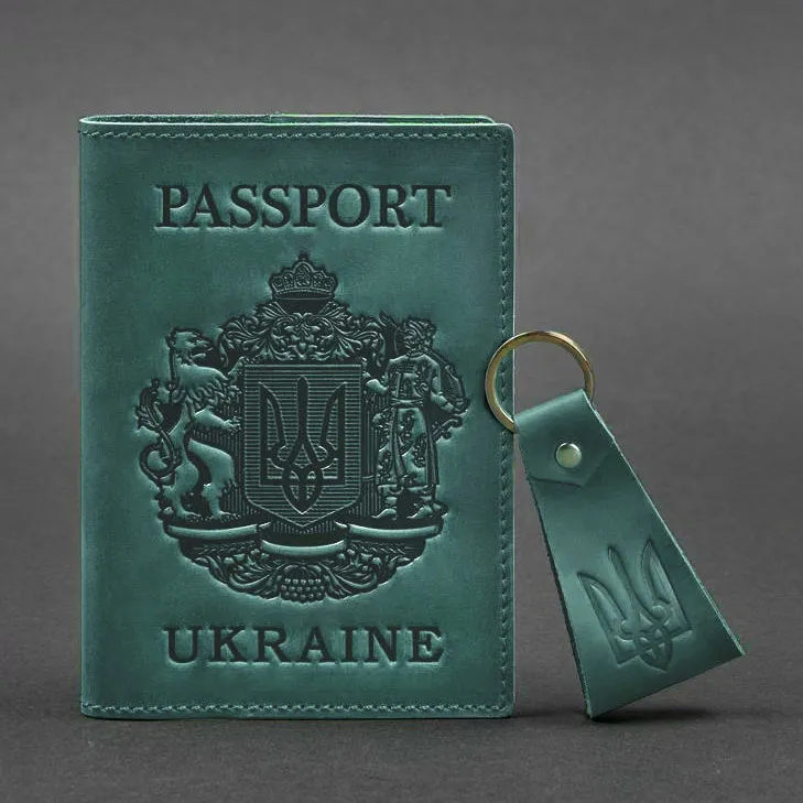 Подарунковий набір шкіряних аксесуарів з українською символікою зелений — це комплект практичних та стильних виробів, створених для повсякденного використання та підкреслюють національну ідентичність. У комплект входять шкіряна палітурка для паспорта з тисненням герба України та брелок з таким самим символом, виконані з натуральної шкіри Crazy Horse високої якості.