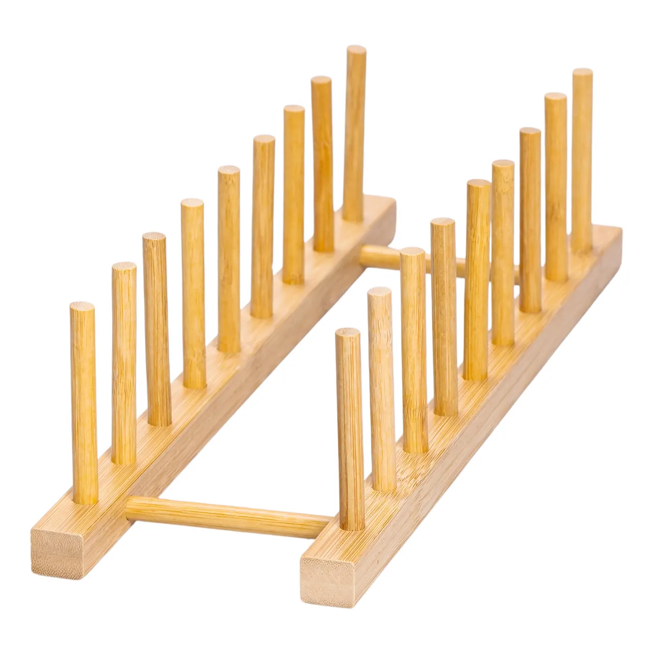 Використання бамбукової підставки забезпечує оптимальний порядок на кухні, усуваючи необхідність ставити тарілки в штабель, що може призвести до їх пошкодження. Вертикальне зберігання сприяє швидкому висиханню після миття, запобігаючи накопиченню вологи і розвитку бактерій.