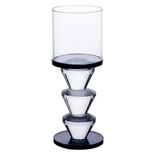 Декоративний підсвічник зі скла розміром 6×15,7 см — стильне доповнення будь-якого інтер'єру. Його циліндрична форма та суворі лінії забезпечують лаконічний зовнішній вигляд, який чудово поєднується з мінімалістичним, скандинавським і сучасним дизайном приміщень. Виготовлений із якісного прозорого сірого скла, підсвічник має легке димчасте забарвлення, що додає глибину та вишуканість виробу. Він призначений для однієї свічки і підійде як для класичних чайних свічок, так і для невеликих циліндричних або конусоподібних свічок.