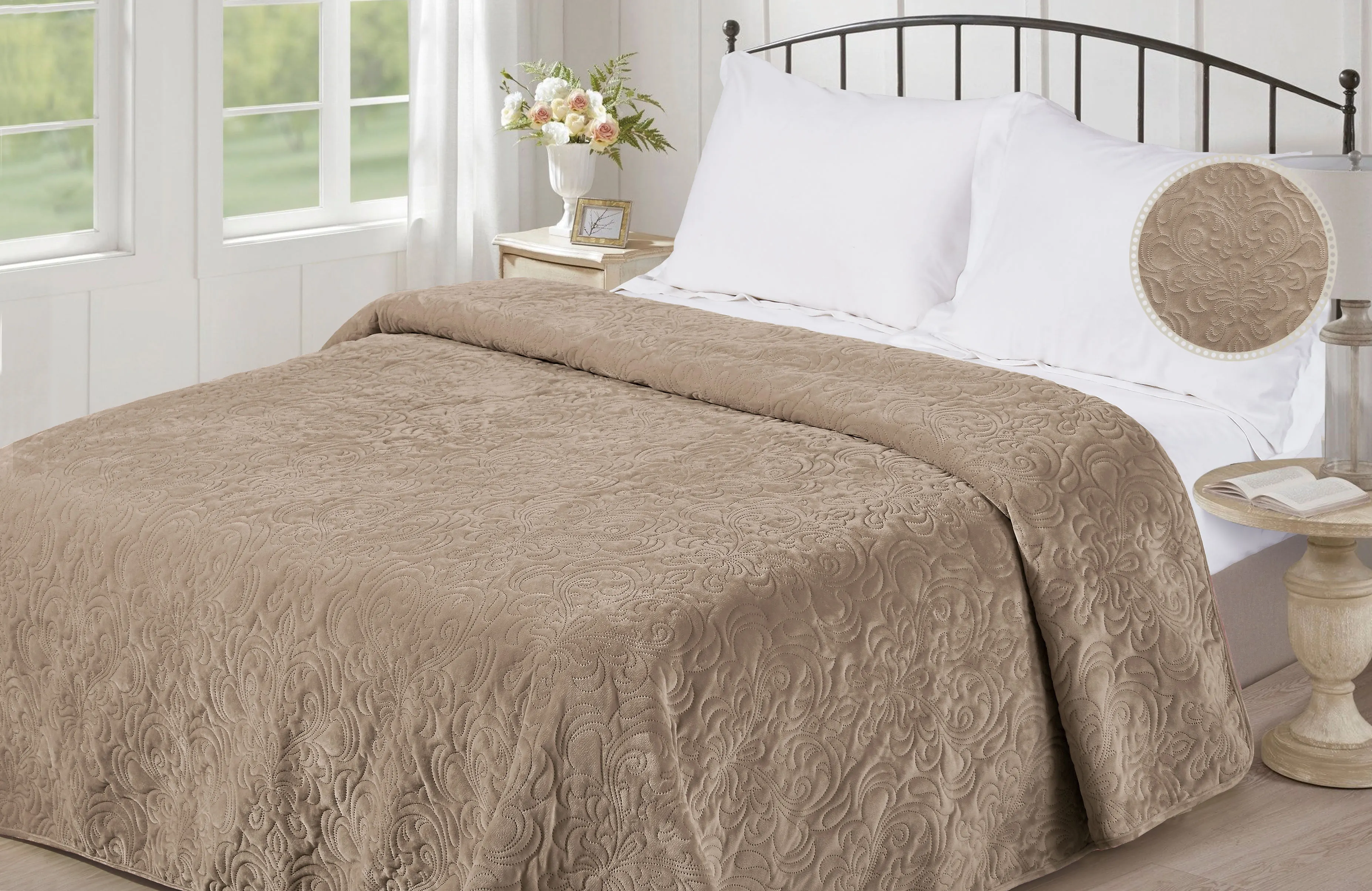 При виборі стьобаного покривала важливо звернути увагу на колірну гаму, яка повинна поєднуватися з інтер'єром. Бежевий колір підкорює своєю універсальністю та гармонійністю, підійде як для класичного, так і для сучасного стилю.
