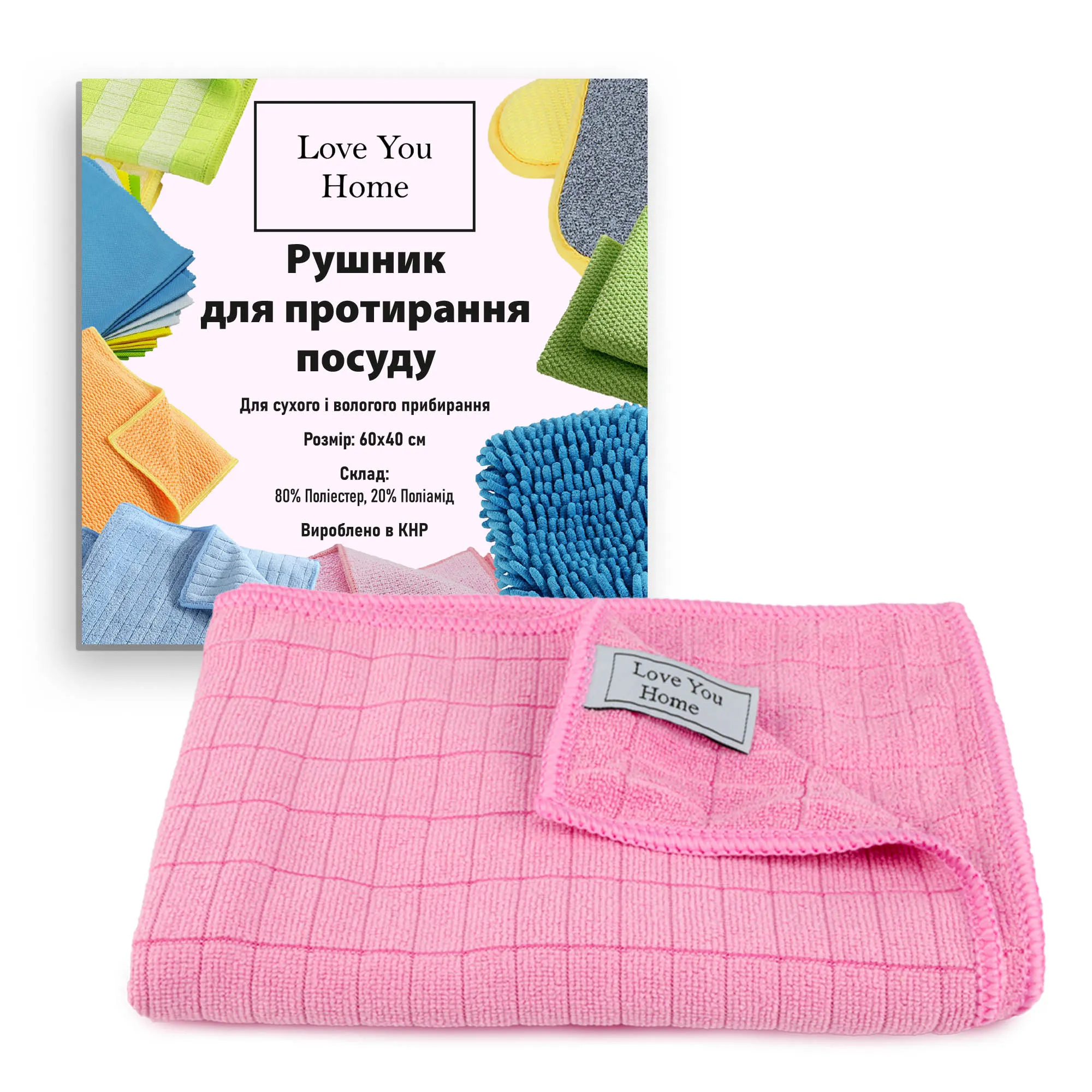 Рушник з мікрофібри для протирання посуду 60х40 см LoveYouHome
