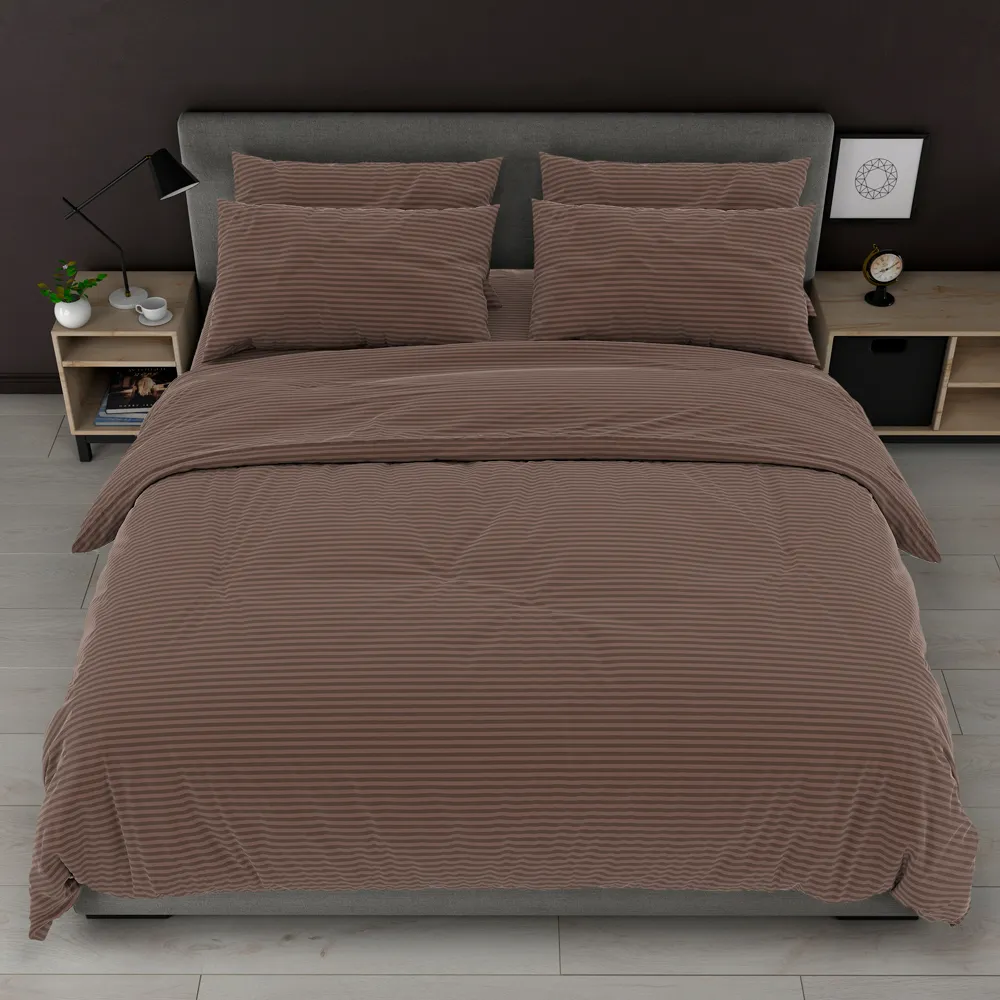 Колір «Шоколадний у смужку» надає комплекту елегантного вигляду, який легко впишеться у будь-який інтер'єр спальні. Виготовлений в Україні комплект відповідає найвищим стандартам якості, що підтверджується його популярністю серед покупців.