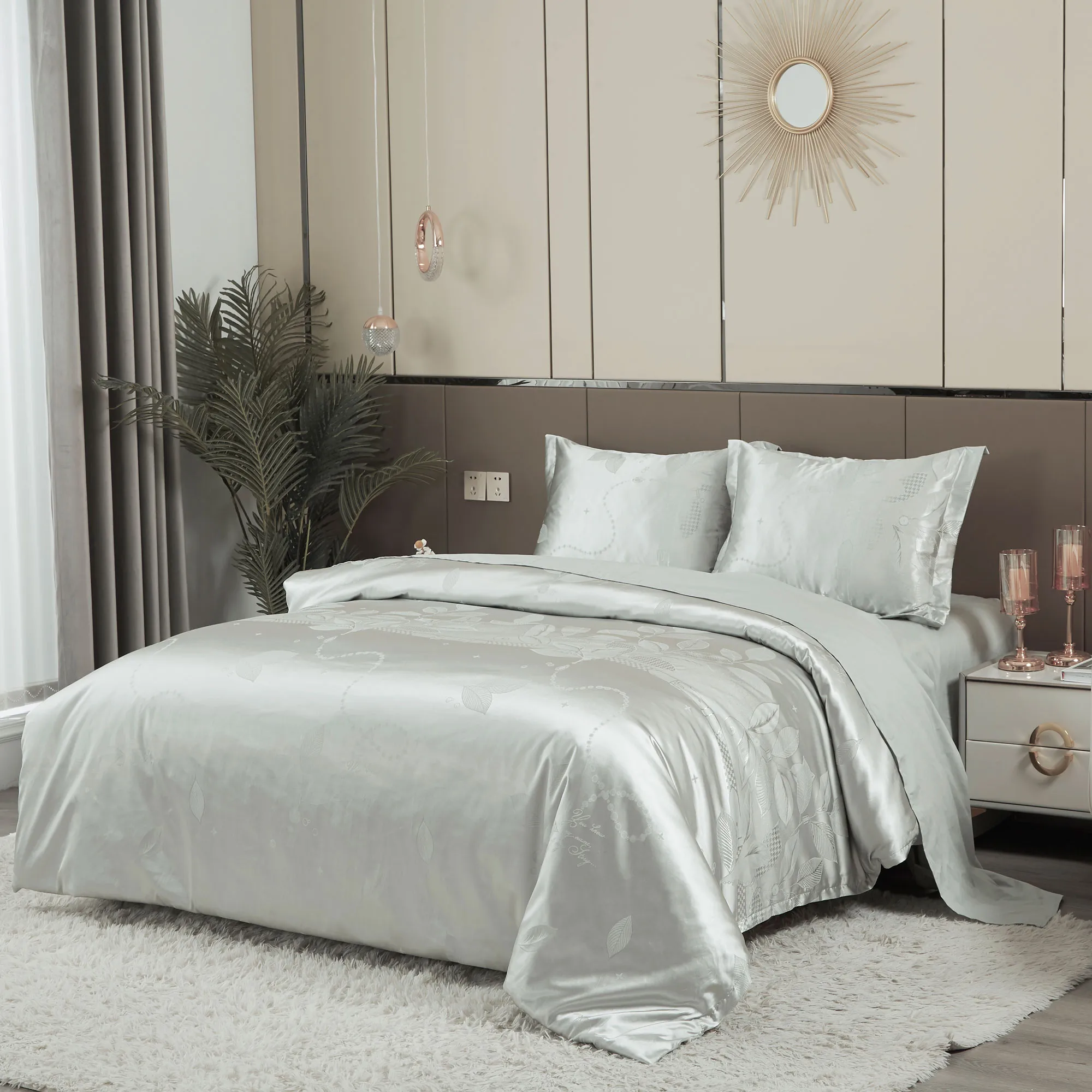 Тканина: Жакард + сатин, простирадло та нижня частина підковдра та наволочок із сатину, верхня частина підковдра та наволочок із жаккарда. Все це доповнюється якісною прозорою упаковкою із ПВХ, яка зберігає тканину в ідеальному стані.