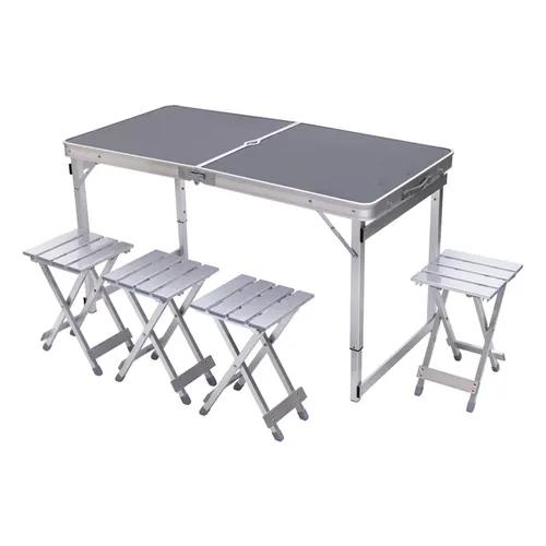 Розкладний стіл та 4 стільці – це зручний комплект меблів на алюмінієвому каркасі, спеціально розроблений для активного відпочинку на природі. Меблі легко складаються, перетворюючись у компактний чемодан, що значно спрощує транспортування та зберігання. Завдяки легкому алюмінієвому каркасу конструкція виходить одночасно міцною та легкою, що важливо для використання в походах, пікніках та на дачі.