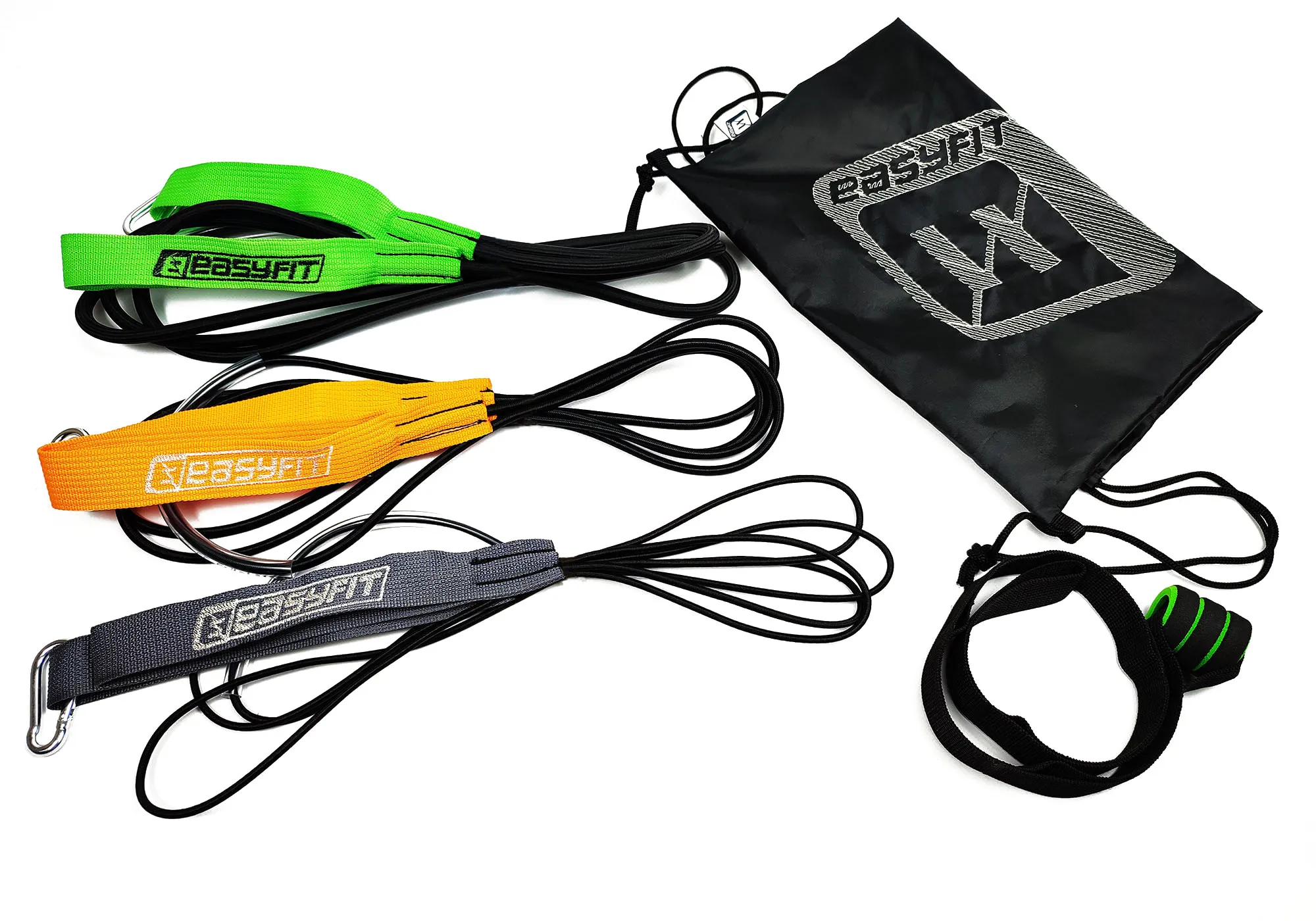 Еспандери EasyFit пропонують широкий спектр вправ. На відміну від замкнутих гумок вони дозволяють використовувати незалежні рухи кожною рукою або ногою, що значно розширює арсенал ваших тренувань. Ви можете використовувати їх для виконання жимів, тяг, вправ з гирею та багато іншого.