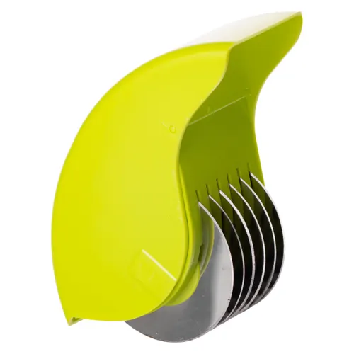 Роликовий ніж слайсер для зелені представляє собою компактний кухонний аксесуар, створений для зручного й швидкого подрібнення різних видів зелені, цибулі, часнику та інших продуктів. Завдяки 6 гострим лезам з нержавної сталі нарізка виходить рівномірною та акуратною, що важливо при приготуванні салатів, заправок і багатьох інших страв.