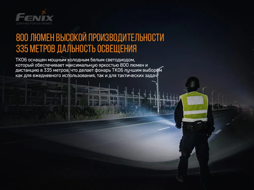 Ліхтар Fenix TK06 ідеально підходить для багатьох сфер використання. Це і туристичні походи, де важливі компактність і надійність, і професійна діяльність рятувальників, охоронців, співробітників служби безпеки, що потребують тактичного освітлення.