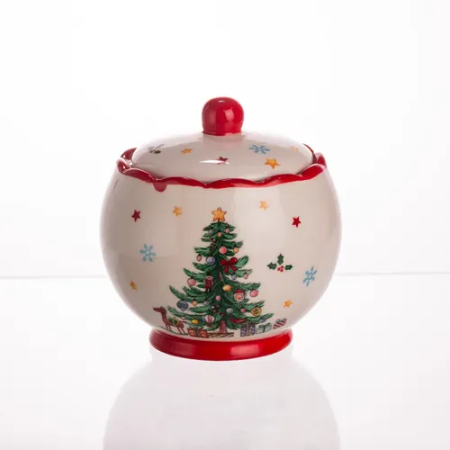 Крім того, цукорниця прекрасно виглядає як декоративний елемент на новорічному столі, надаючи святу особливу атмосферу і затишок. Вона чудово підійде для чаювань, сімейних свят і навіть щоденного використання.