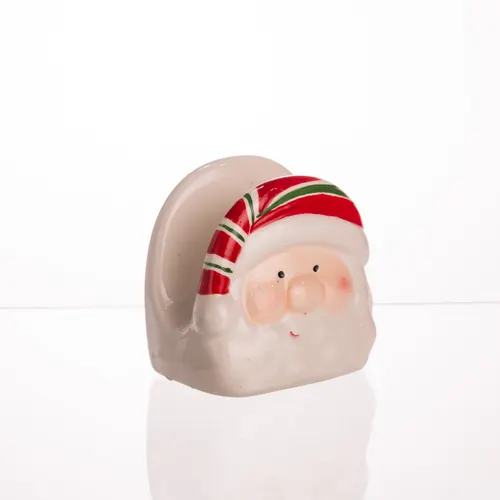 Порцелянова серветниця у формі Санти стане ідеальним доповненням для святкового столу в новорічному стилі. Виріб виготовлений з високоякісного порцеляни з гладким глазурованим покриттям, що забезпечує легкість у догляді та стійкість до потертостей. Компактні розміри 8×6×9 см роблять серветницю зручною для розміщення на будь-якому столі, не займаючи багато місця.