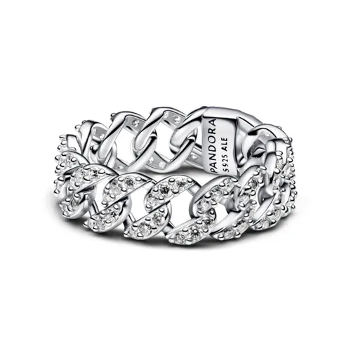 Срібне кільце Pandora Кубинське плетіння з паве є вишуканою прикрасою, яка чудово доповнить будь-який образ. Виготовлене з високоякісного срібла, це кільце виділяється унікальним дизайном та блиском каменів паві. Доступно у розмірах від 48 до 58, ця прикраса стане ідеальним доповненням до ваших аксесуарів.