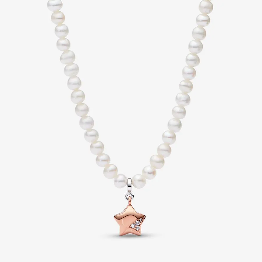 Срібне намисто Пандора Щаслива зірка з обробленими прісноводними культивованими перлами