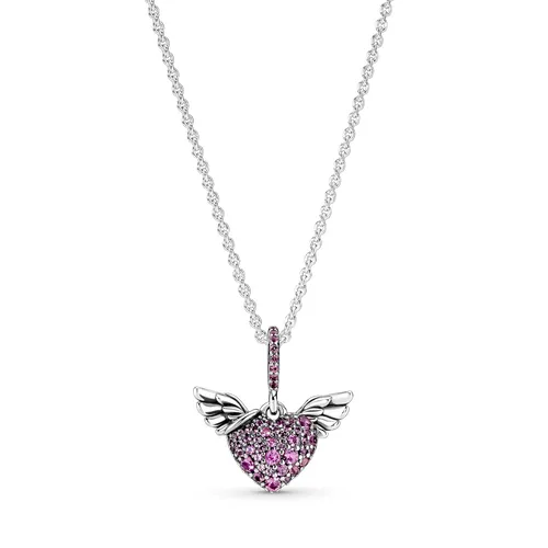 Срібне намисто Pandora Серце з паве та крилами янгола