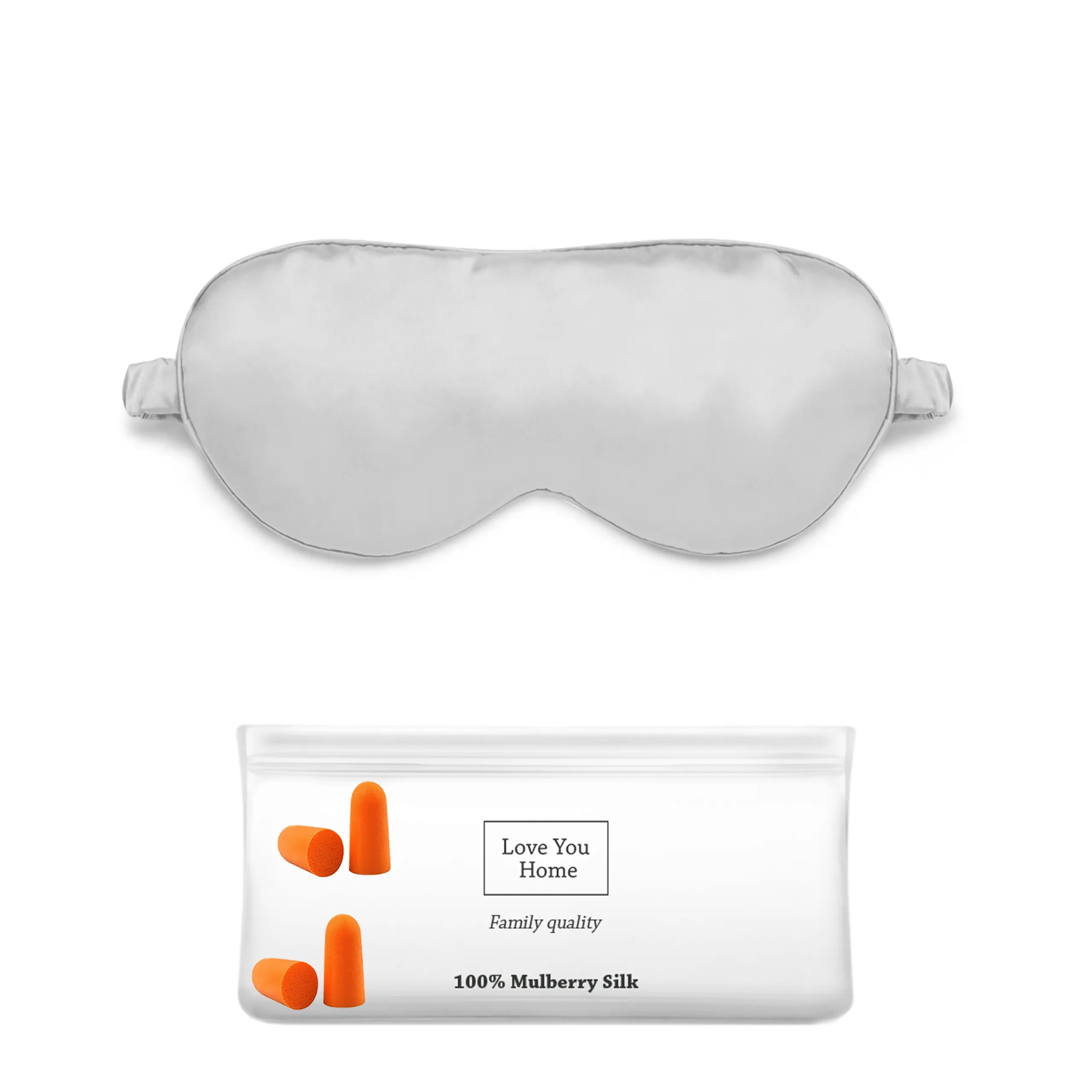 Цей набір включає все необхідне для комфортного та здорового сну: маску для сну з натурального шовку, беруші та зручну косметичку у вигляді подарункового пакету. Колір набору – світло-сірий, виконаний із 100% натурального шовку преміум-класу Mulberry silk, що забезпечує м'якість та довговічність виробу.